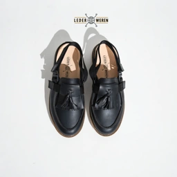 Lederweren mempersembahkan The Tassel Slingback, sebuah perpaduan inovatif antara gaya Loafer Tassel klasik dan kepraktisan sandal slingback modern. Sepatu ini dirancang untuk pria yang menginginkan tampilan berbeda, elegan, dan tetap sangat nyaman untuk digunakan sehari-hari.Dibuat dari Kulit Sapi Asli premium, sepatu ini menawarkan kualitas tinggi, tampilan mewah, dan ketahanan jangka panjang. Detail rumbai (tassel) yang berkelas dipadukan dengan sol platform kontras yang kini menjadi tren, menghasilkan statement look yang berani.