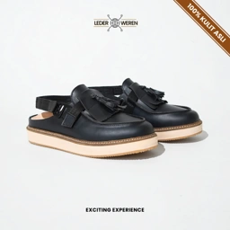 Lederweren mempersembahkan The Tassel Slingback, sebuah perpaduan inovatif antara gaya Loafer Tassel klasik dan kepraktisan sandal slingback modern. Sepatu ini dirancang untuk pria yang menginginkan tampilan berbeda, elegan, dan tetap sangat nyaman untuk digunakan sehari-hari.Dibuat dari Kulit Sapi Asli premium, sepatu ini menawarkan kualitas tinggi, tampilan mewah, dan ketahanan jangka panjang. Detail rumbai (tassel) yang berkelas dipadukan dengan sol platform kontras yang kini menjadi tren, menghasilkan statement look yang berani.